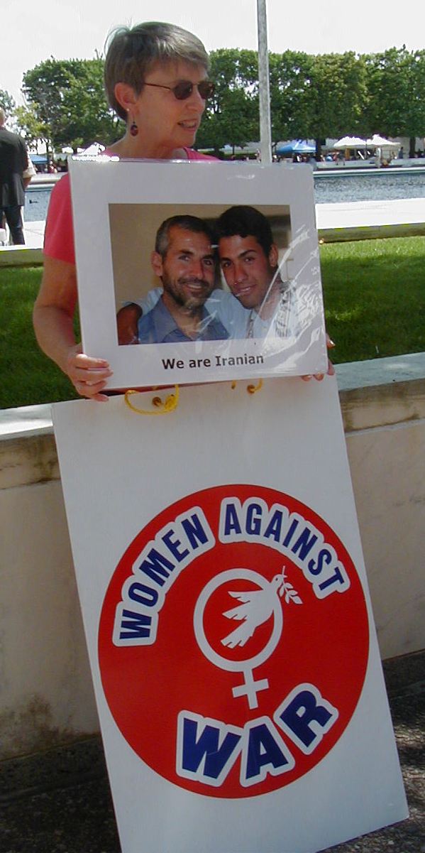 Diane Reiner, the photographer who took the photos of Iranian people that are such an essential part of our message was one of the vigilers. Here's a photo of Diane at the vigil holding a photo of two Iranian astronomers.