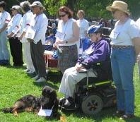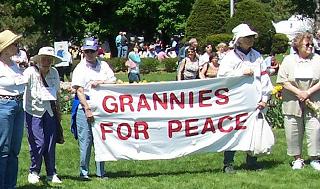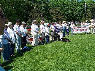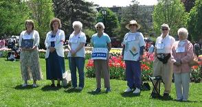 | Following the hour-long silent vigil, women spread out in pairs throughout the park, distributing leaflets about the event.  Click here to see more Mother's Day pictures.     |  In 2006, Women Against War activists were also at the Tulip Festival, calling on the US not to attack Iran.